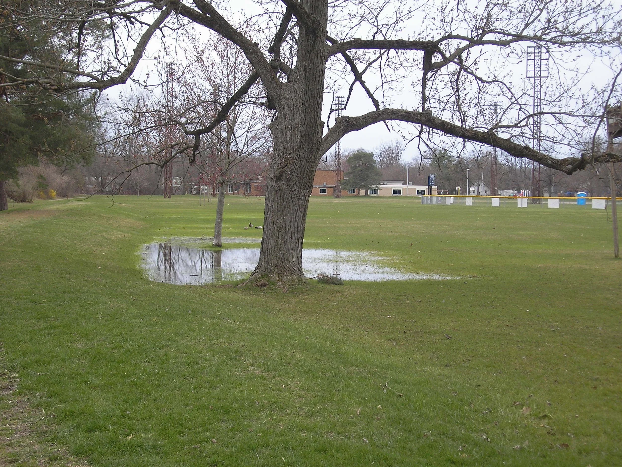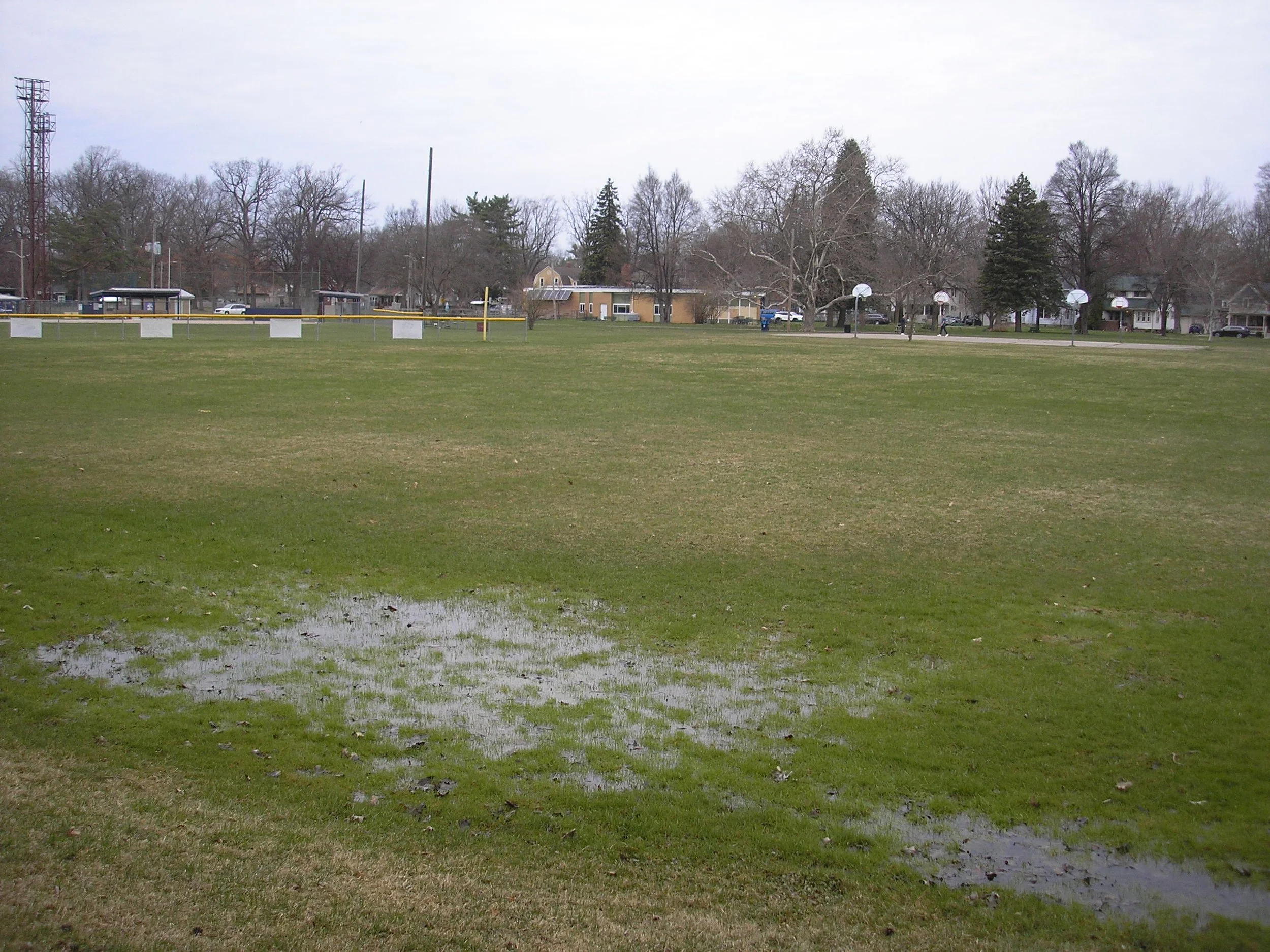 GrIT insights remotely pinpointed intermittent flooding and a prime location for a large rain garden (or small wetland). This intervention would control haphazard pooling, beautify the park, reduce runoff to nearby streets and basements, improve downstream water quality, and create quality wildlife habitat. Everyone wins… Even the ducks!